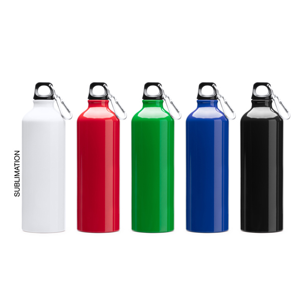Sticlă din aluminiu cu carabină, cu o capacitate mare de 800 ml, perfectă pentru deplasări. Culoare albă potrivită pentru sublimare.